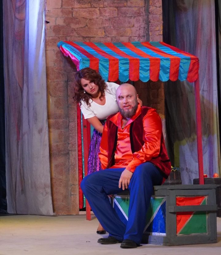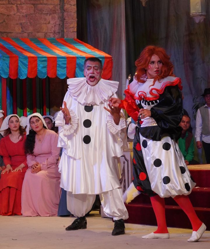 В спектакле заняты: Канио – Адиль Ахундов, Недда – Фатима Джафарзаде, Тонио – заслуженный артист Антон Ферштандт, Сильвио – Рза Хосровзаде, Беппо – Фехмин Ахмедли, Крестьяне – Турал Агасиев и Халид Дашдемир.