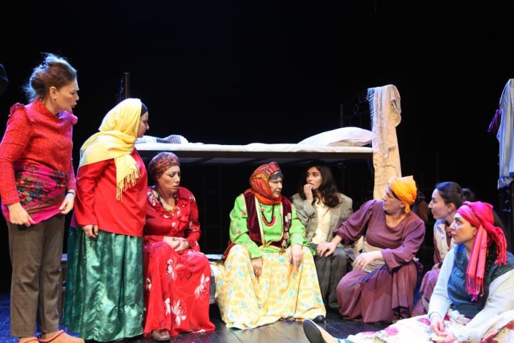 В спектакле приняли участие Заслуженный артист Азизага Азизов ( Бабек), Гусейн Алили (Полицейский Аслан). Роли семи сестер воплотили - Томрис (Офелия Мамедова), Нигяр (Ульвия Алиева), Нушаба (Туркель Таригпейма), Араби (Гюльтадж Алили), Гудрат (Гюльнара Азизова ), Хаджар (Гюльджахан Саламова), Шохрет (Нармин Алиева и Нигяр Рустамова)