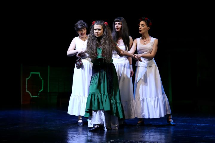 Однако за стенами дома продолжается жизнь - жаркое лето, свобода и ощущение иной реальности. Яблоком раздора становится единственный мужчина – Пепе эль Романо (Анар Микаилов). Девушки следят друг за другом, завидуют и вместо любви наполняют сердца ненавистью и болью. Все усилия их матери и все попытки служанки исправить взрывоопасную ситуацию терпят полное фиаско… Слишком опасно насильно сдерживать женскую природу… С каждой сценой напряжение усиливается, превращая пространство дома в символ подавления, где любое чувство уже воспринимается как бунт. Страстью и необузданными порывами пронизана каждая мизансцена. Мистика так и витает в воздухе этого закрытого от чужих глаз дома. Спектакль заканчивается трагедией, когда Адела (Тамилла Абуталыбова), обнаружив, что не сможет быть с Пепе эль Романо, кончает жизнь самоубийством. Бернарда, даже после смерти дочери, по-прежнему обеспокоена внешним видом и приказывает сказать, что Адела умерла невинной, тем самым поддерживая видимость чести и порядочности семьи.