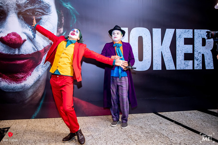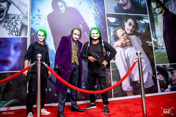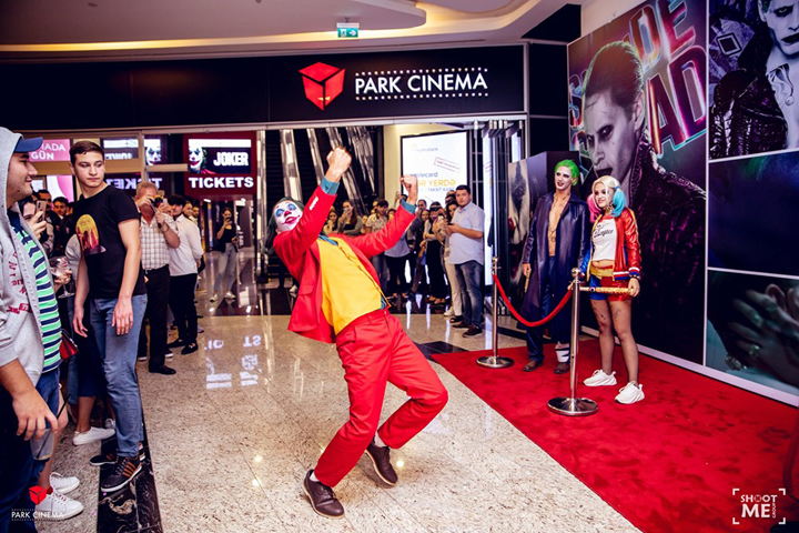 В кинотеатре Park Cinema Flame Towers состоялся грандиозная вечеринка и показ фильма "Джокер". Когда все гости расслабились и окунулись в дружескую атмосферу мероприятия, нагрянули четыре нежданных гостя - четыре образа Джокера. Они разыграли яркое шоу, фотографировались и делали селфи с гостями вечера.